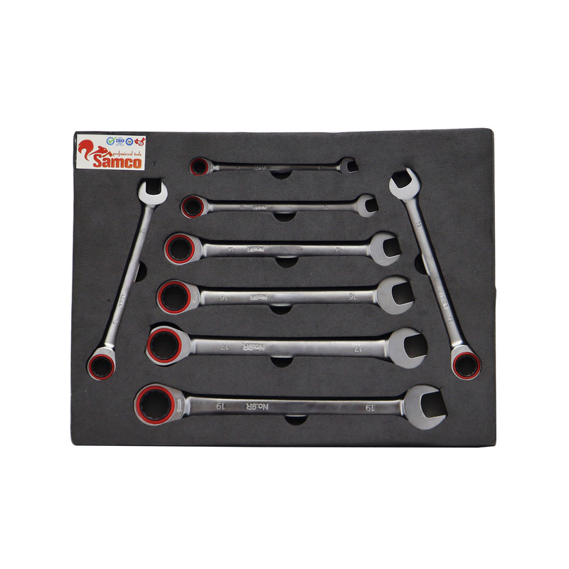 آچار یکسر تخت و یکسر رینگی جغجغه ای سامکو مدل YP-AT-8-19MM مجموعه 8 عددی