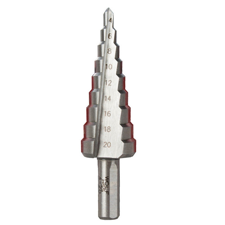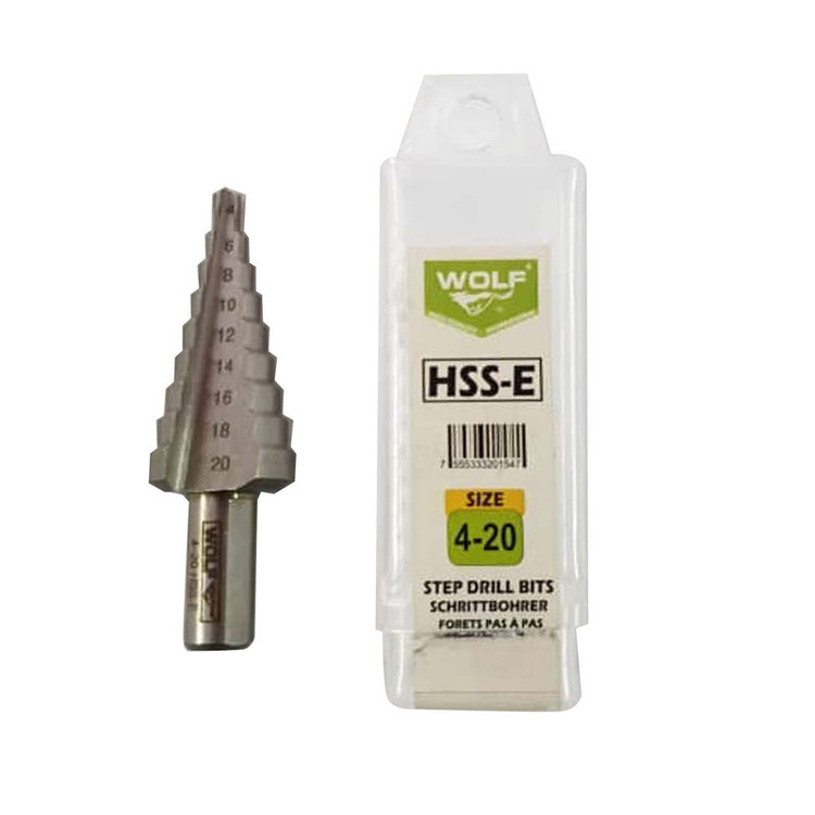 اعداد حک شده بر روی تنه مته، قطر سوراخ را نشان می دهد. از مته پله ای برای برش دایره ای چوب استفاده می شود و طراحی پله ای این مته به گونه ای است که در نوک مته کمترین قطر و بیشترین قطر شامل انتهای آن می شود و نیازی به تغییر نیست. با فشار هر چه بیشتر میتواند به راحتی با قطر دلخواه سوراخکاری کنید. نمونه ای از پر استقبال ترین مته ها، مته مخروطی پله ای ولف با سایز 12-4، 20-4، 25-4، 32-4، 42-4 است که از نظر استحکام و دوام در سطح مطلوبی قرار گرفته است.