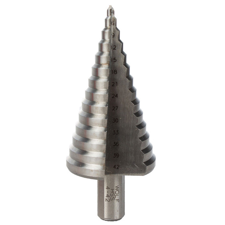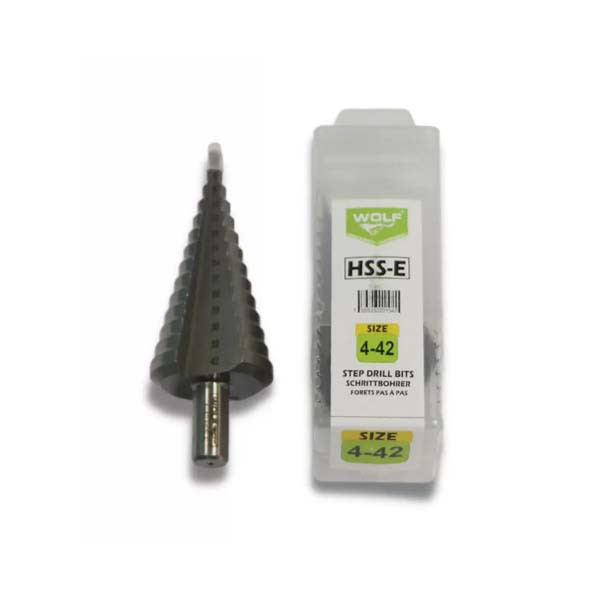 اعداد حک شده بر روی تنه مته، قطر سوراخ را نشان می دهد. از مته پله ای برای برش دایره ای چوب استفاده می شود و طراحی پله ای این مته به گونه ای است که در نوک مته کمترین قطر و بیشترین قطر شامل انتهای آن می شود و نیازی به تغییر نیست. با فشار هر چه بیشتر میتواند به راحتی با قطر دلخواه سوراخکاری کنید. نمونه ای از پر استقبال ترین مته ها، مته مخروطی پله ای ولف با سایز 12-4، 20-4، 25-4، 32-4، 42-4 است که از نظر استحکام و دوام در سطح مطلوبی قرار گرفته است.