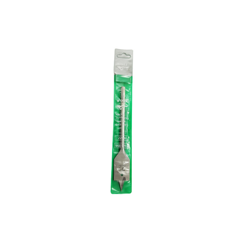 مته برگی ولف دارای یک صفحه مسطح و تیغه ای پهن مثل برگ، همراه با فلش نوک تیز پیکانی شکل است که در چوب فرو می رود. مته برگی قابل نصب بر روی انواع دریل ها بوده و در سایزهای مختلف طراحی، ساخته شده و برای سوراخکاری سطح های گوناگون مانند فلز، چوب، سنگ، شیشه، سرامیک و … مناسب می باشد. همچنین برای حفاری و سوراخ کردن با مته برگی ولف، نیاز به فشار بیشتری دارد. طول تیغه پهن این مته برگی 20 میلی متر است که می توانید از آن برای ایجاد سوراخ به قطر 20 میلی متر در انواع چوب استفاده کنید.