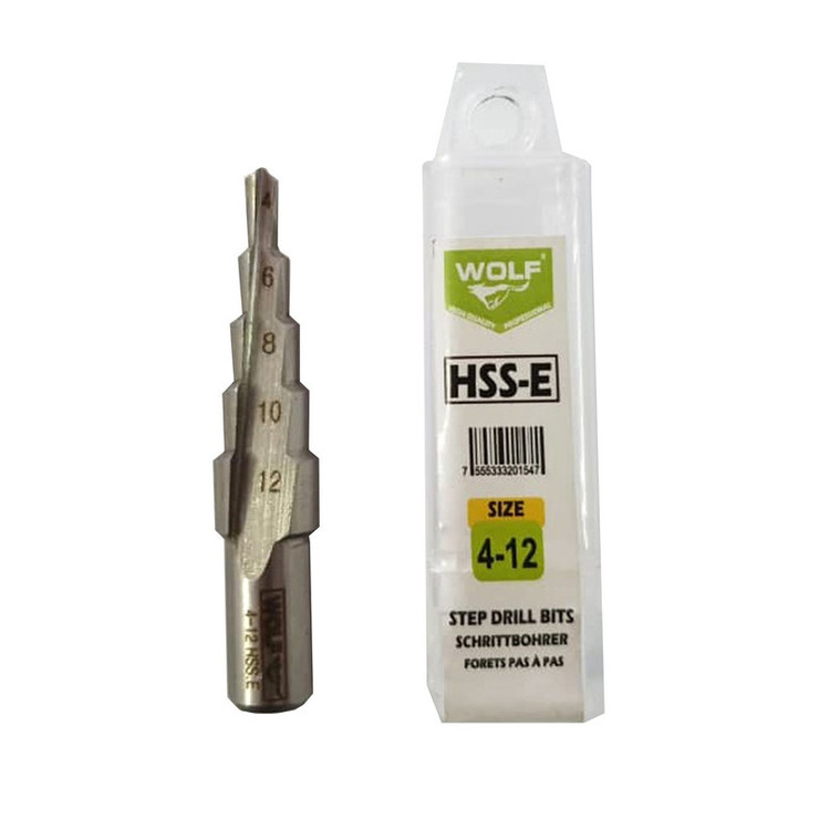 اعداد حک شده بر روی تنه مته، قطر سوراخ را نشان می دهد. از مته پله ای برای برش دایره ای چوب استفاده می شود و طراحی پله ای این مته به گونه ای است که در نوک مته کمترین قطر و بیشترین قطر شامل انتهای آن می شود و نیازی به تغییر نیست. با فشار هر چه بیشتر میتواند به راحتی با قطر دلخواه سوراخکاری کنید. نمونه ای از پر استقبال ترین مته ها، مته مخروطی پله ای ولف با سایز 12-4، 20-4، 25-4، 32-4، 42-4 است که از نظر استحکام و دوام در سطح مطلوبی قرار گرفته است.
