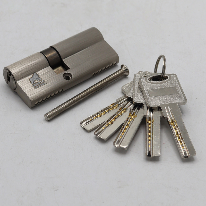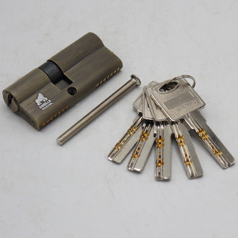 - سیلندر قفل در مغزی برنجی مدل گوریلا - دارای 5 کلید برنجی ( کامپیوتری ) - سيلندر قفل دو طرف باز شو - مغزی دارای 7 پين برنجی - سايز 70 ميلی متر (30+40) - دارای پیچ 6.5 سانتی برای بستن سیلندر - دارای سه رنگ :طلایی . ساتن . زیتونی