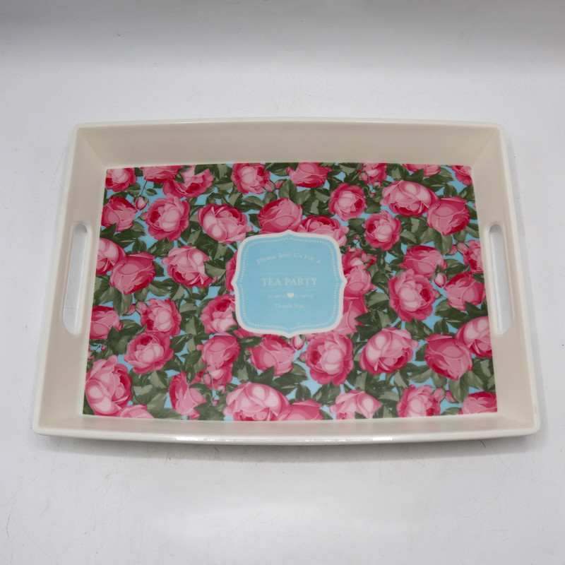 - سینی دسته دار بارسلون مدل تی پارتی - طرح : دسته دار گل دار - کد : B-702 - سایز : 32.5x24x4 سانتی متر - جنس: ملامین - وزن : 400 گرم - بسیار سبک و مقاوم در برابر ضربه