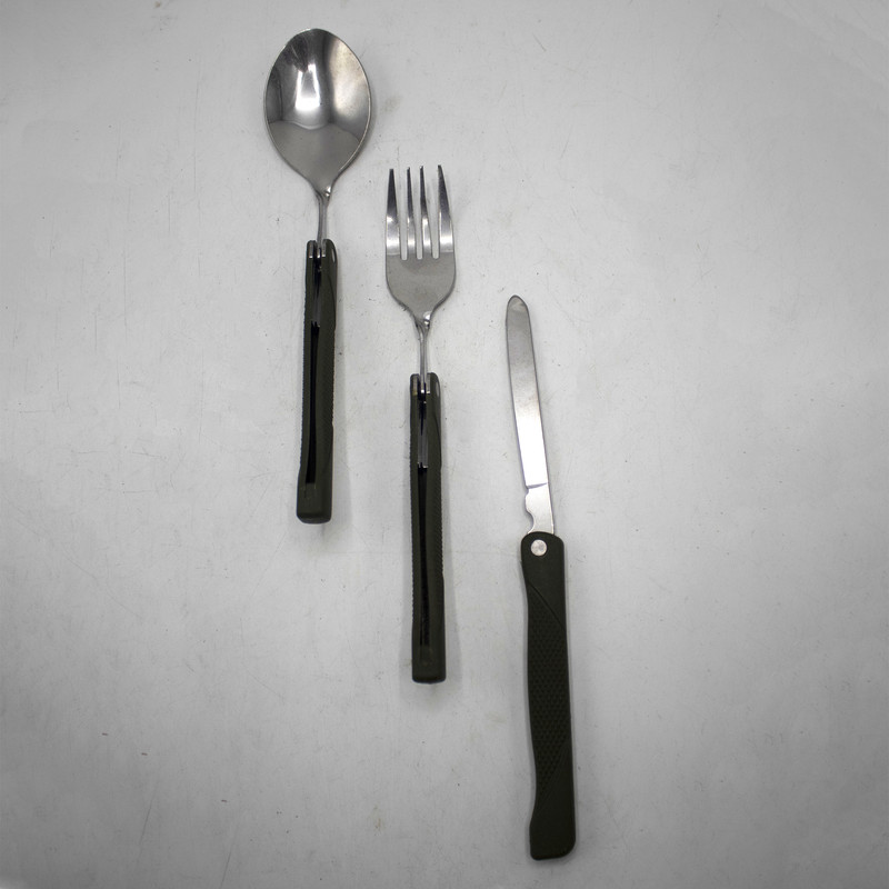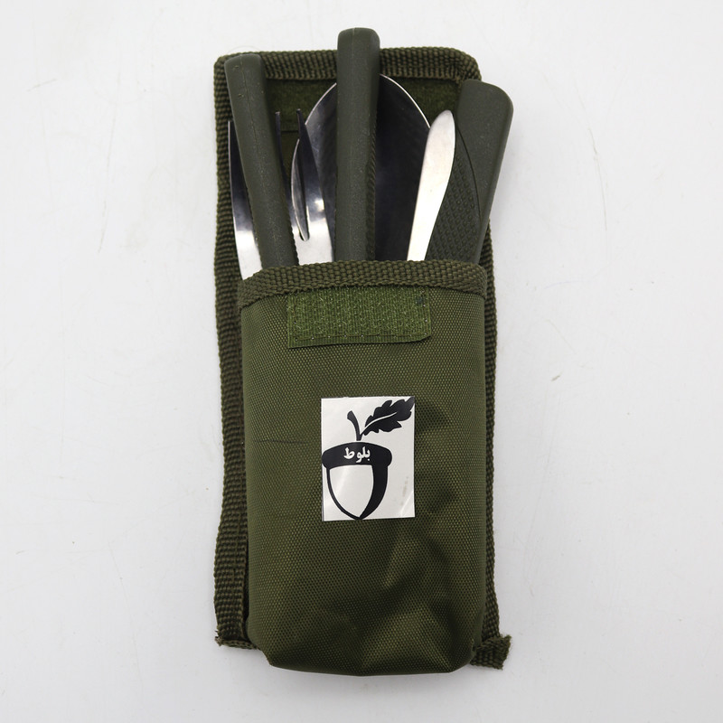 ست قاشق و چنگال و چاقو سفری مدل بلوط کد YP-ARTESHI03 مجموعه 3 عددی