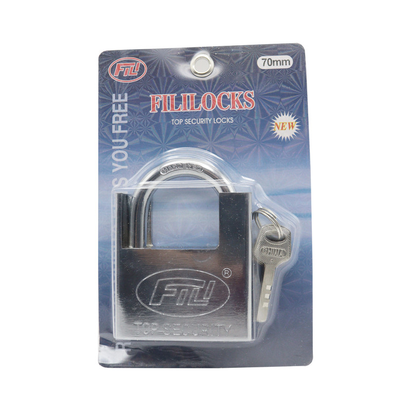 - قفل آویز فیلی - سایز : 70میلیمتر - بازو دار (یک طرف بازشو) - دارای سیلندر از جنس برنج - زبانه قفل از فلز - دارای 4 کلید مخصوص (با سختی بالا) - ساخته شده از قفل استیل با سختی بالا - کیفیت بالا