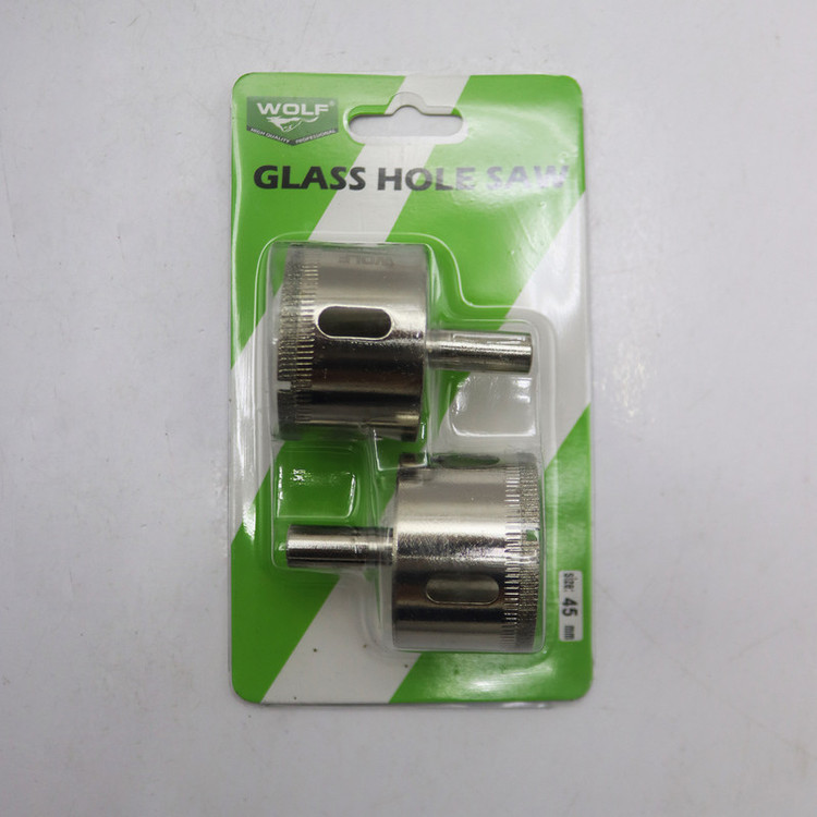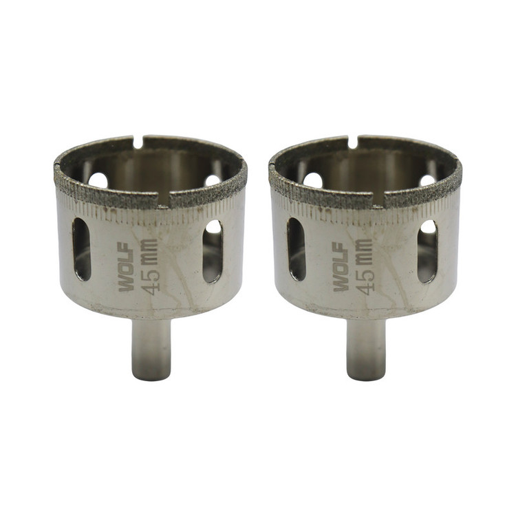 - مته گردبر شیشه ولف مجموعه 2 عددی - سایز 45 میلی متر - ساخته شده از بدنه فلزی با آلیاژ فلزات سخت - با لبه های سگمنت حاوی پودر الماس - مناسب جهت استفاده در دریل های سه نظامی - کیفیت بالا