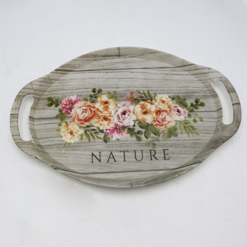- سینی دسته دار مدل نیچر - طرح : طرح چوب گل دار - کد :D70 - جنس: ملامین - ابعاد : 37.5x25.5x2 سانتیمتر - وزن : 395 گرم - بسیار سبک و مقاوم در برابر ضربه - قابلیت شستشو در ماشین ظرف شویی و با دست
