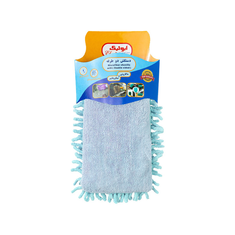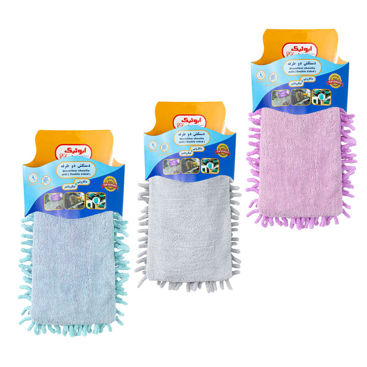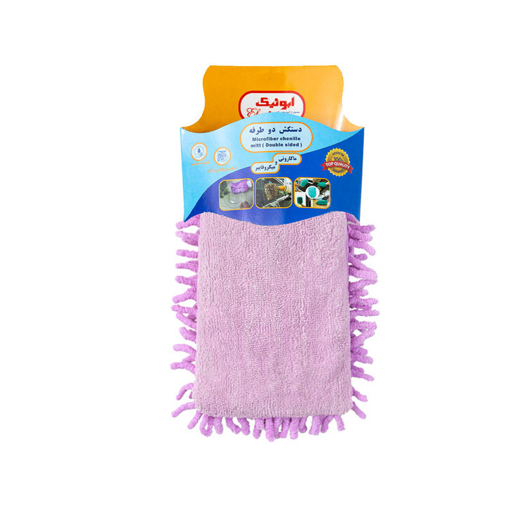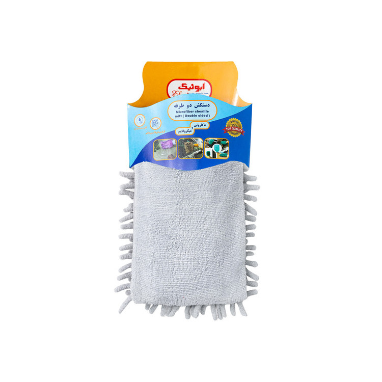 دستکش دوطرفه محصولی جدید که دارای قدرت بالا در جذب آلودگی ها ، تراکم بالا ، قابل شستشو ، یک سمت پارچه ماکارونی و سمت دیگر میکروفایبر مناسب برای نظافت سطوح منزل و خودرو